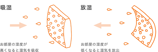 | エコカラットのニオイ・吸湿・放湿のしくみ | ||||||||||||||||||||||||||||